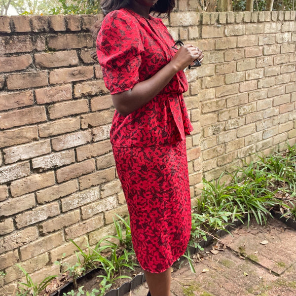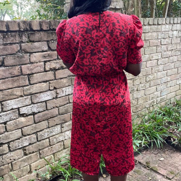 80's red and black peplum dress medium